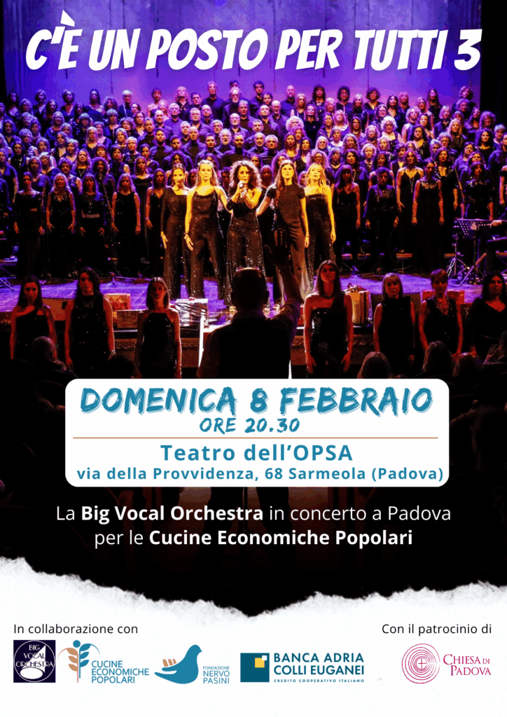 Dopo due edizioni sold out che hanno emozionato Padova e portato allo scoperto la forza discreta della solidarietà, la Big Vocal Orchestra torna ad affiancare le Cucine Economiche Popolari con un nuovo concerto dedicato a chi vive situazioni di fragilità. Un appuntamento molto atteso, che unisce musica, comunità e vicinanza concreta a una delle realtà storiche della città.