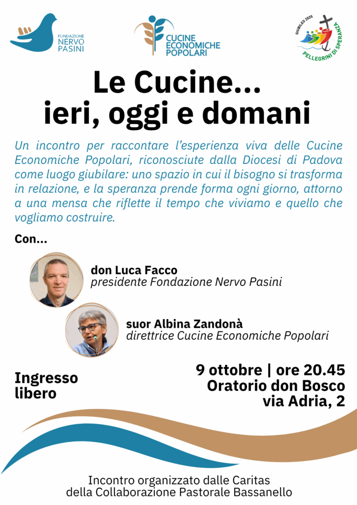 Un incontro per raccontare l’esperienza viva delle Cucine Economiche Popolari, riconosciute dalla Diocesi di Padova come luogo giubilare in occasione del Giubileo della Speranza 2025. Un riconoscimento che non riguarda solo la storia di un’istituzione più che centenaria, ma soprattutto la vita che ogni giorno prende forma dentro le Cucine: uno spazio in cui il bisogno si trasforma in relazione e la speranza diventa concreta attorno a una mensa che riflette il tempo che viviamo e quello che vogliamo costruire.