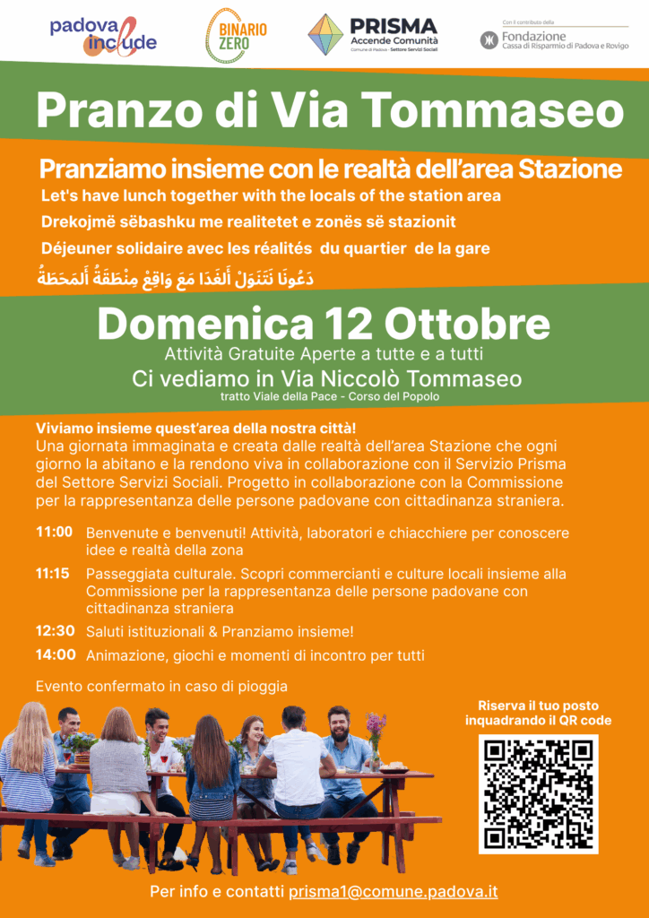 La giornata inizierà alle ore 11.00 con l’accoglienza, attività e laboratori, seguiti da una passeggiata tra i commercianti della zona insieme alla Commissione per la rappresentanza delle persone padovane con cittadinanza straniera. Un modo semplice per scoprire da vicino la vitalità del quartiere e le culture che lo abitano.
